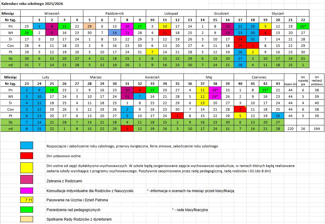 | 13 kwietnia 2026 | — | Posiedzenie Rady Pedagogicznej |